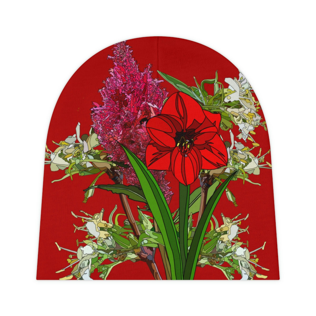 .: Note: solid background & full-bleed pattern may not cover 100% of the creased area along the seams of the beanie.